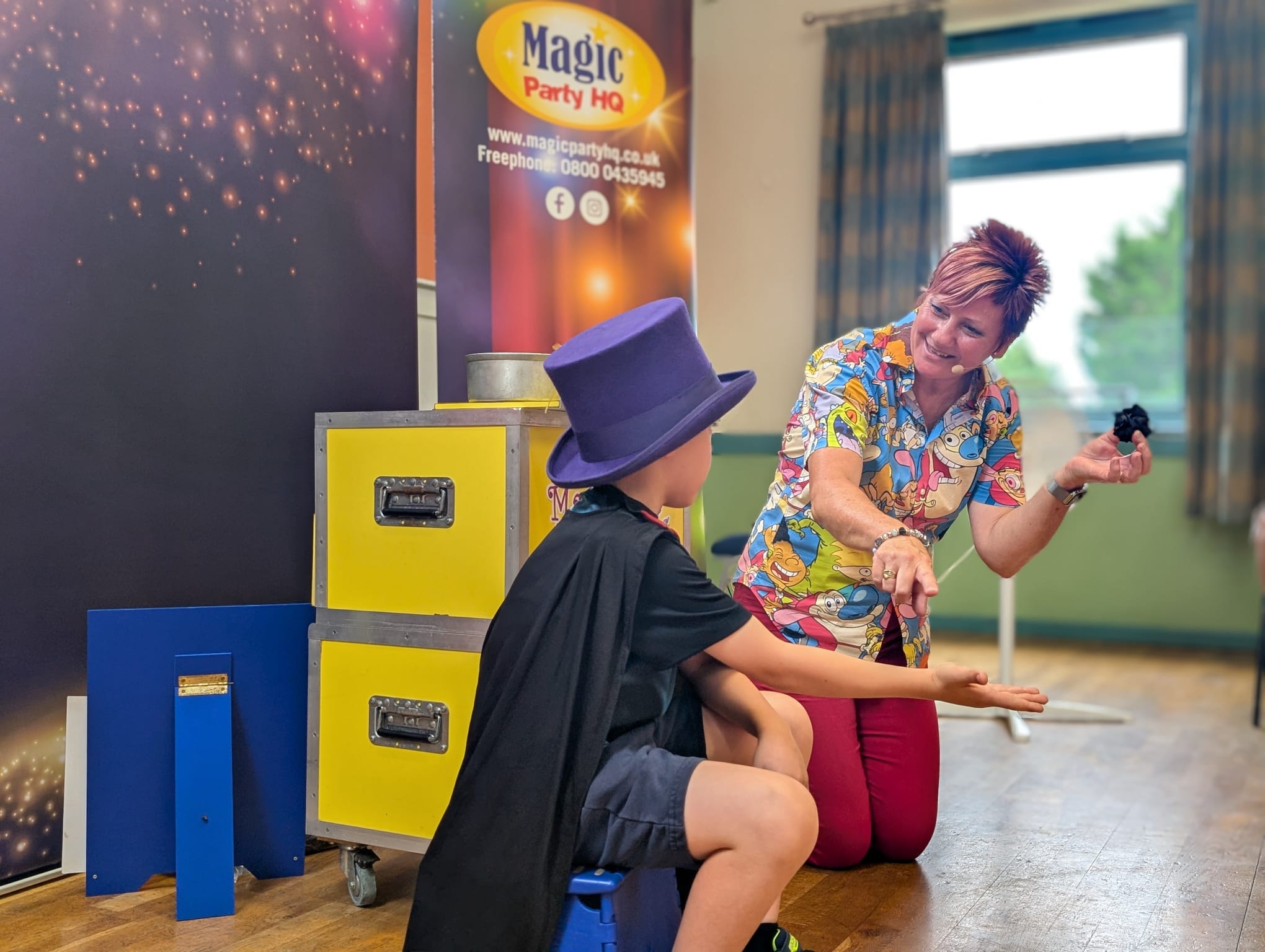 Options include our amazing & hilarious 45 minutes comedy magic shows; a 60 minutes show with dancing, walkabout meet & greet and our premium 2 hours hosted party option, including dancing, magic, balloon modelling, puppetry and prizes.
