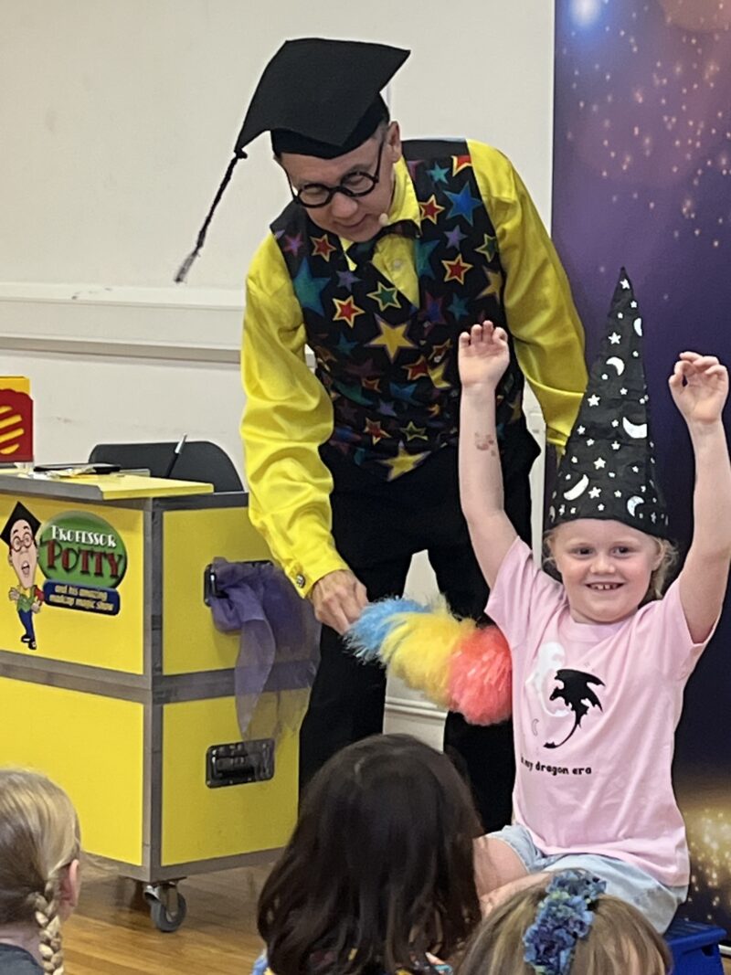 Professor Potty & Magic Wanda each have a specially designed show for preschool children and are re-booked every year for dedicated preschool events, such as graduations and Christmas parties.